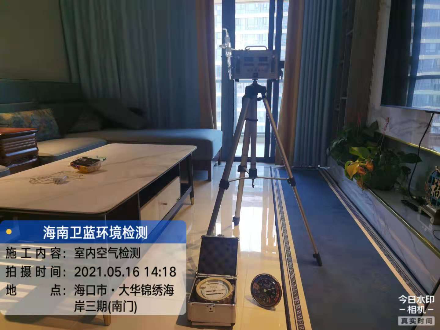 按照預(yù)定時間,衛(wèi)藍環(huán)境檢測上門采樣人員于五月十六日下午二時許到達??谑行阌^(qū)長濱七路大華錦繡海岸三期,進行室內(nèi)空氣檢測的甲醛采樣工作。業(yè)主按照GB/T 18883-2002《室內(nèi)空氣質(zhì)量標(biāo)準》要求,在采樣前對每個需要采樣的房間進行單獨密閉,累積密閉時長12小時,現(xiàn)場室內(nèi)溫度29.5°C左右,經(jīng)現(xiàn)場勘察環(huán)境適合采樣,采樣人員現(xiàn)場組裝儀器,穿上鞋套,進行采樣作業(yè)。