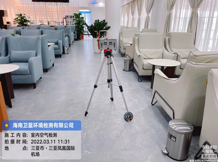 按照預定時間,衛(wèi)藍環(huán)境檢測上門采樣人員于三月十一日上午十一時許到達三亞鳳凰機場貴賓休息區(qū),進行室內(nèi)空氣檢測的甲醛采樣工作。公司按照GB/T 18883-2002《室內(nèi)空氣質(zhì)量標準》要求,在采樣前對每個需要采樣的房間進行單獨密閉,累積密閉時長12小時,經(jīng)現(xiàn)場勘察環(huán)境適合采樣,采樣人員現(xiàn)場組裝儀器,穿上鞋套,進行采樣作業(yè),本次采樣300平。