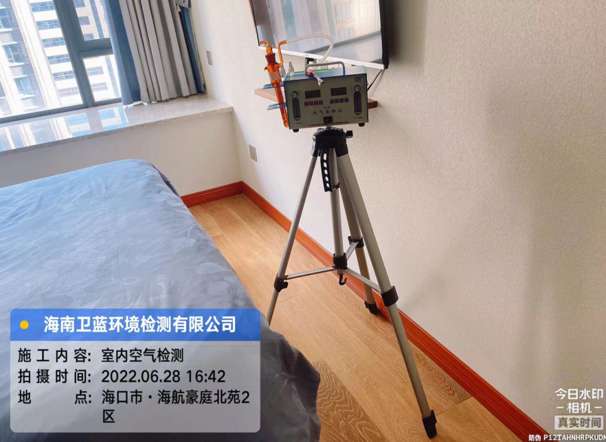 按照預(yù)定時(shí)間,衛(wèi)藍(lán)環(huán)境檢測上門采樣人員于六月二十八日下午十六時(shí)許到達(dá)??谑?/span>海航豪庭北苑,進(jìn)行室內(nèi)空氣檢測的甲醛采樣工作。業(yè)主按照GB/T 18883-2002《室內(nèi)空氣質(zhì)量標(biāo)準(zhǔn)》要求,在采樣前對每個(gè)需要采樣的房間進(jìn)行單獨(dú)密閉,累積密閉時(shí)長12小時(shí),現(xiàn)場室內(nèi)溫度29.0°C左右,經(jīng)現(xiàn)場勘察環(huán)境適合采樣,采樣人員現(xiàn)場組裝儀器,穿上鞋套,進(jìn)行采樣作業(yè)。