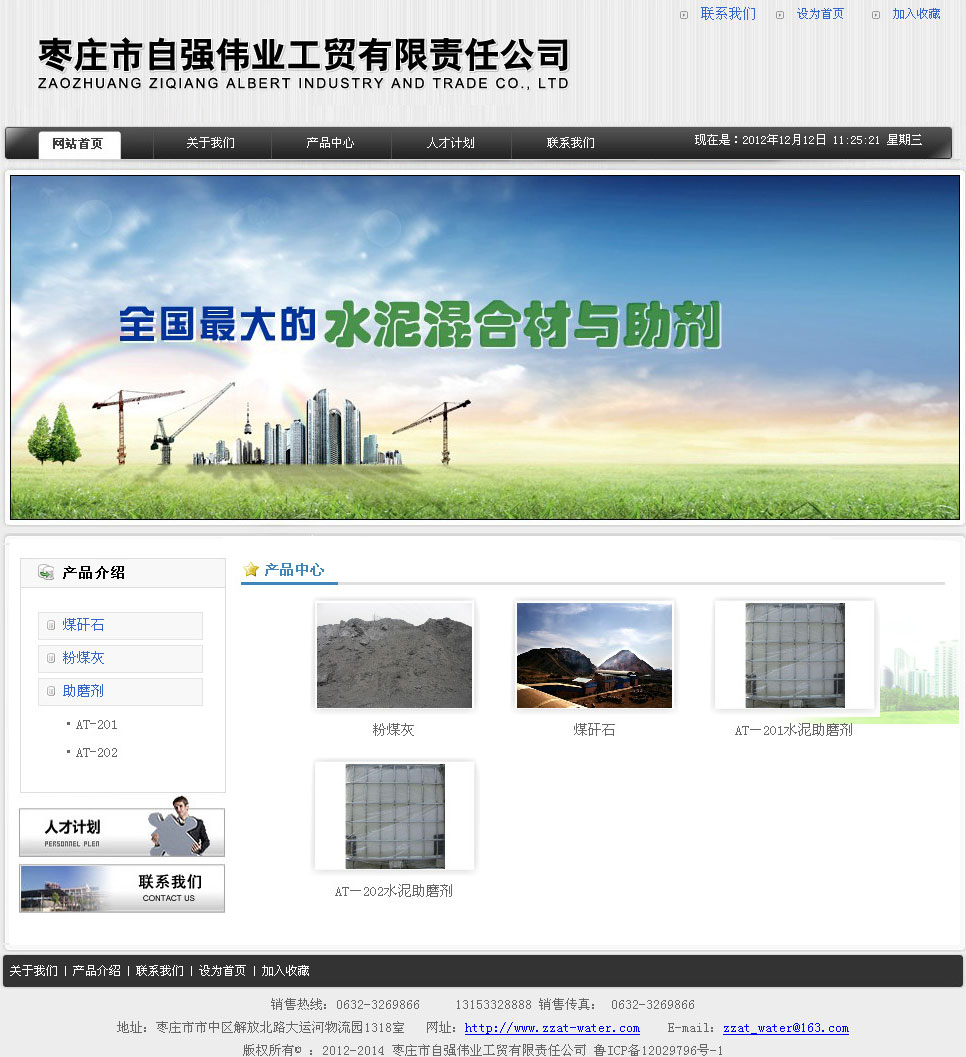 棗莊網(wǎng)站制作 英特網(wǎng)絡(luò)公司提醒如下內(nèi)容。 棗莊市自強(qiáng)偉業(yè)工貿(mào)有限責(zé)任公司是一家專門從事水泥混合材料、水泥化學(xué)助劑生產(chǎn)、銷售為一體的規(guī);尽9境D旯⿷(yīng)煤矸石、粉煤灰等水泥生產(chǎn)用混合材料,以及水泥助磨劑、三乙醇胺、乙二醇等水泥生產(chǎn)用化學(xué)助劑。公司注冊(cè)資金300萬元,是全國(guó)大的水泥混合材與助劑供應(yīng)商之一,現(xiàn)有資源與產(chǎn)品介紹如下: 煤矸石 公司擁有550萬噸煤矸石資源,主要供應(yīng)棗莊中聯(lián)水泥廠、臨沂沂州水泥廠、山東金橋水泥廠以及棗莊周邊50余家粉磨站。是全國(guó)大的煤矸石資源提供商。 粉煤灰 公司擁有590萬噸濕粉煤灰資源,以及年產(chǎn)20萬噸干粉煤灰生產(chǎn)線,主要有一級(jí)灰、二級(jí)灰和濕灰三種產(chǎn)品。是全國(guó)大的粉煤灰濕灰資源提供商。 助磨劑 主要產(chǎn)品有AT系列水泥助磨劑。維持原來強(qiáng)度,可多摻9-11%混合材,提高磨機(jī)10-20%產(chǎn)量。 水處理劑 主營(yíng)產(chǎn)品有阻垢劑、緩蝕劑、殺菌滅藻劑、清洗劑、預(yù)膜劑、螯合劑、分散劑、反滲透藥劑、膜阻垢劑等,廣泛應(yīng)用于工業(yè)循環(huán)水、鍋爐及采暖水、油田注水、反滲透膜等系統(tǒng)。 我們的定位:做水泥廠供貨商賴信賴的合作伙伴!永不與其爭(zhēng)客戶。