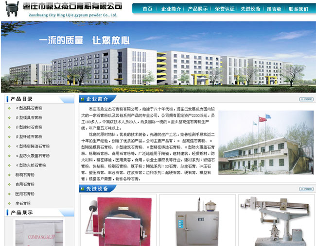 棗莊市鼎立杰石膏粉有限公司,始建于八十年代初,現(xiàn)在已發(fā)展成為國內(nèi)較大的一家石膏粉以及其他系列產(chǎn)品的專業(yè)公司。公司擁有固定資產(chǎn)2200萬元,員工180多人,中高級(jí)技術(shù)人員20人,兩條國際一流的α型β型高強(qiáng)石膏粉生產(chǎn)線,年產(chǎn)量五萬噸以上。 優(yōu)良的原材物料,優(yōu)良的技術(shù)裝備,先進(jìn)的生產(chǎn)工藝,完善檢測(cè)手段和近二十年的生產(chǎn)經(jīng)驗(yàn),創(chuàng)造了優(yōu)質(zhì)的產(chǎn)品,公司主要產(chǎn)品有:α 型高強(qiáng)石膏粉、α 型陶瓷模具石膏粉、β型建筑石膏粉、α型精密鑄造石膏粉、α型防火覆蓋石膏粉、粉刷石膏粉、食用石膏粉等。廣泛地適用于陶瓷,建材建筑,輕質(zhì)板材,防火材料,精密鑄造,醫(yī)用美容,食用,農(nóng)業(yè)土壤改良等行業(yè)。建材系列:嵌縫石膏粉、快粘粉、粉刷石膏粉、膩?zhàn)臃;陶瓷系列:KS石膏、分生石膏、沖壓石膏、塑壓石膏、車臺(tái)石膏、注漿石膏;齒科系列:起硬石膏、硬石膏、模型石膏;根據(jù)客戶需要,制作各種石膏。